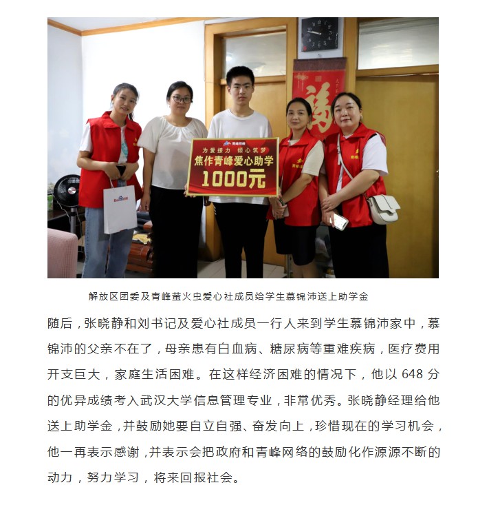 青峰助學(xué) 傾心筑夢--青峰創(chuàng)元集團(tuán)螢火蟲愛心活動第219期